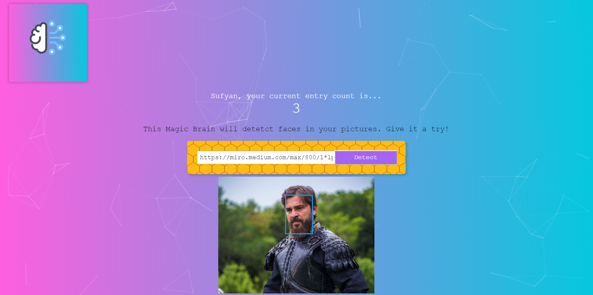 I developed a full-stack application that uses an AI API to detect human faces in user-submitted image URLs.